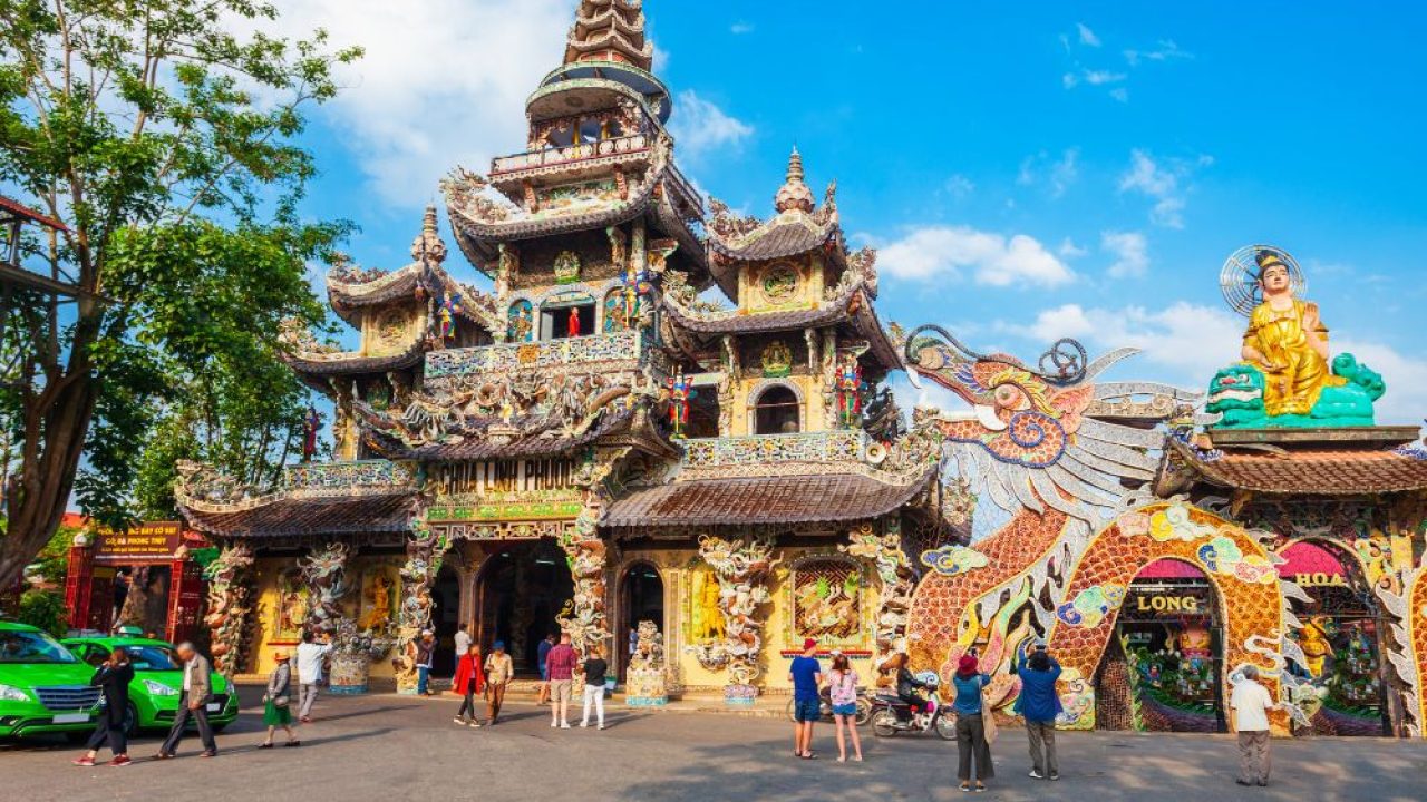 Tận hưởng không gian yên bình tại Nhà Thờ Domain, Quảng Trường Lâm Viên, và Chùa Linh Phước – ngôi chùa nổi tiếng với kiến trúc độc đáo.