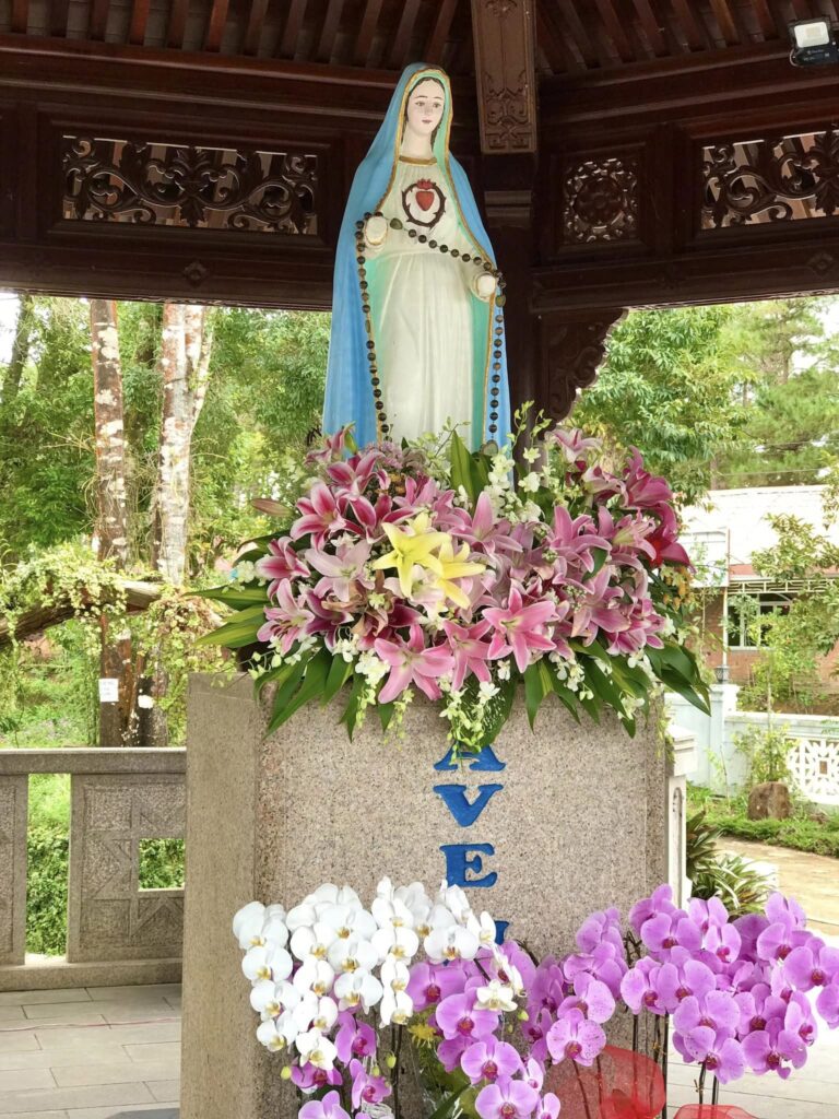 - Hành hương tượng Đức Mẹ Măng Đen linh thiêng, nơi nhiều tín đồ hành hương đến cầu nguyện.